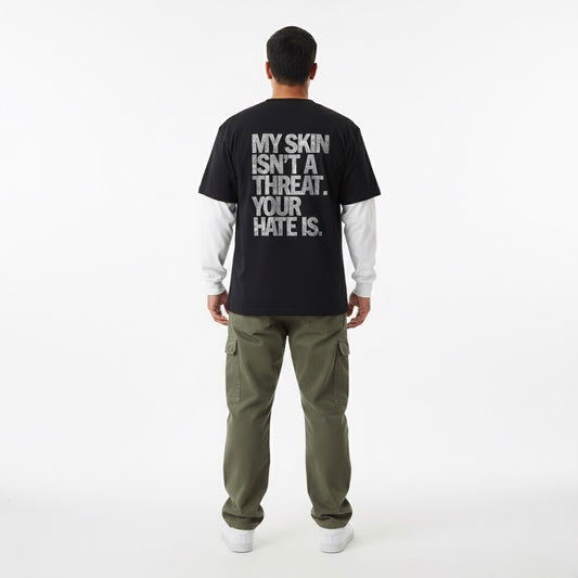 NO HATE Layered Contrast Sleeve Cotton T-Shirt