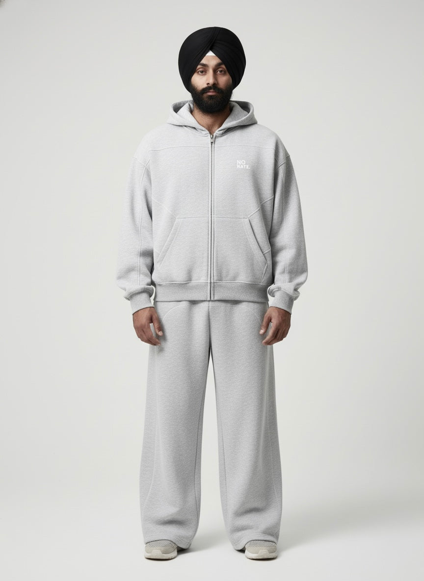 NO HATE Contrast-Stitched Boxy Fleece Hoodie