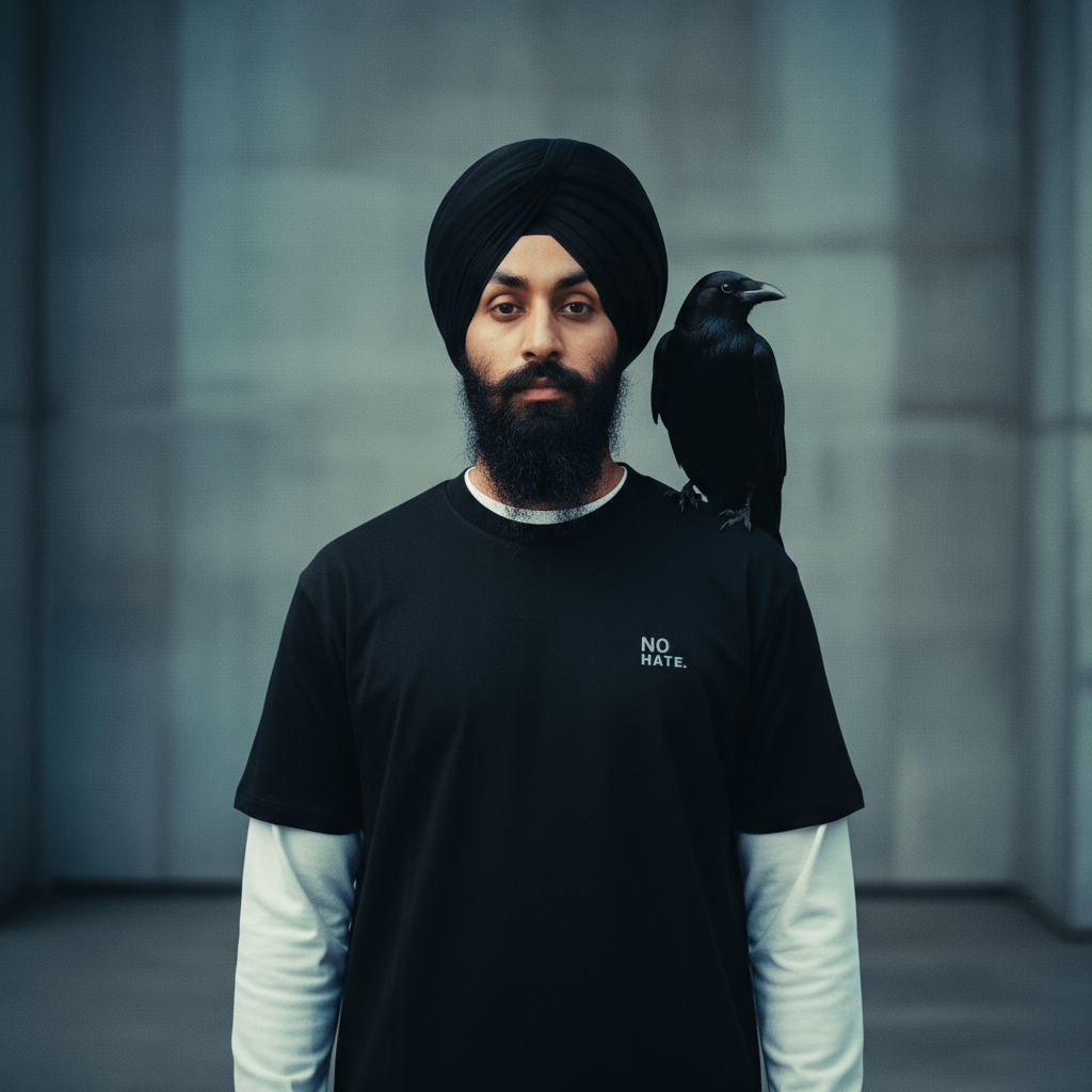 NO HATE Layered Contrast Sleeve Cotton T-Shirt